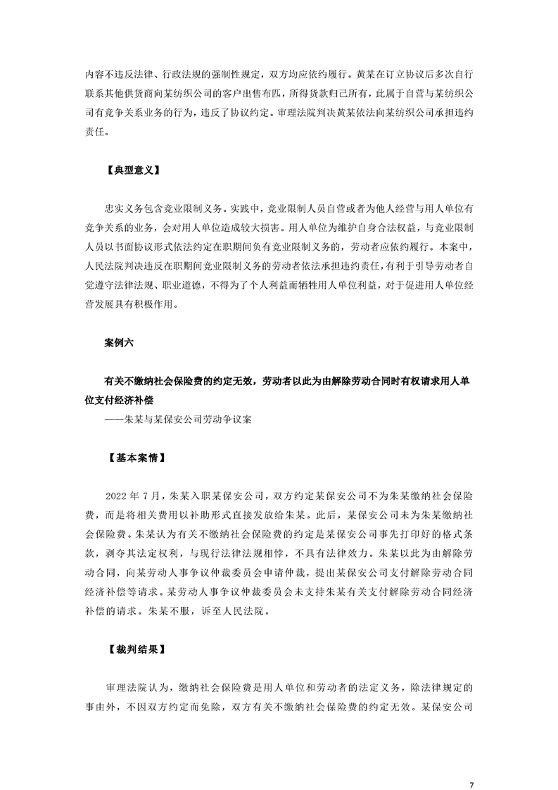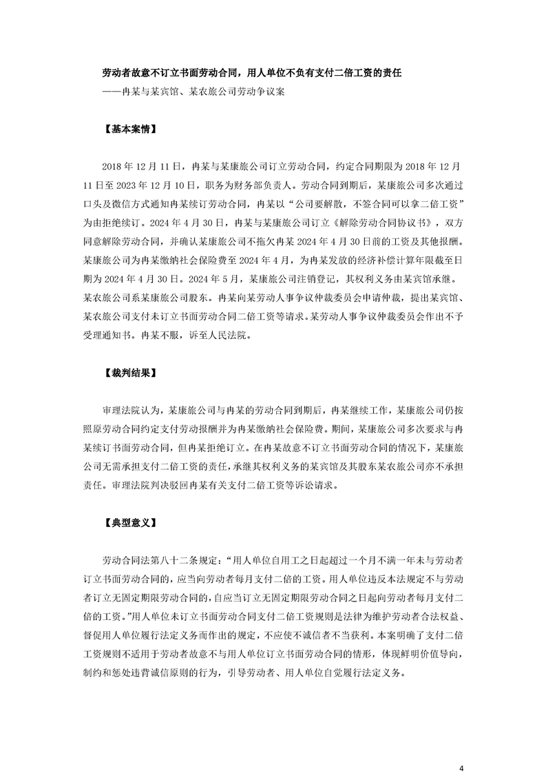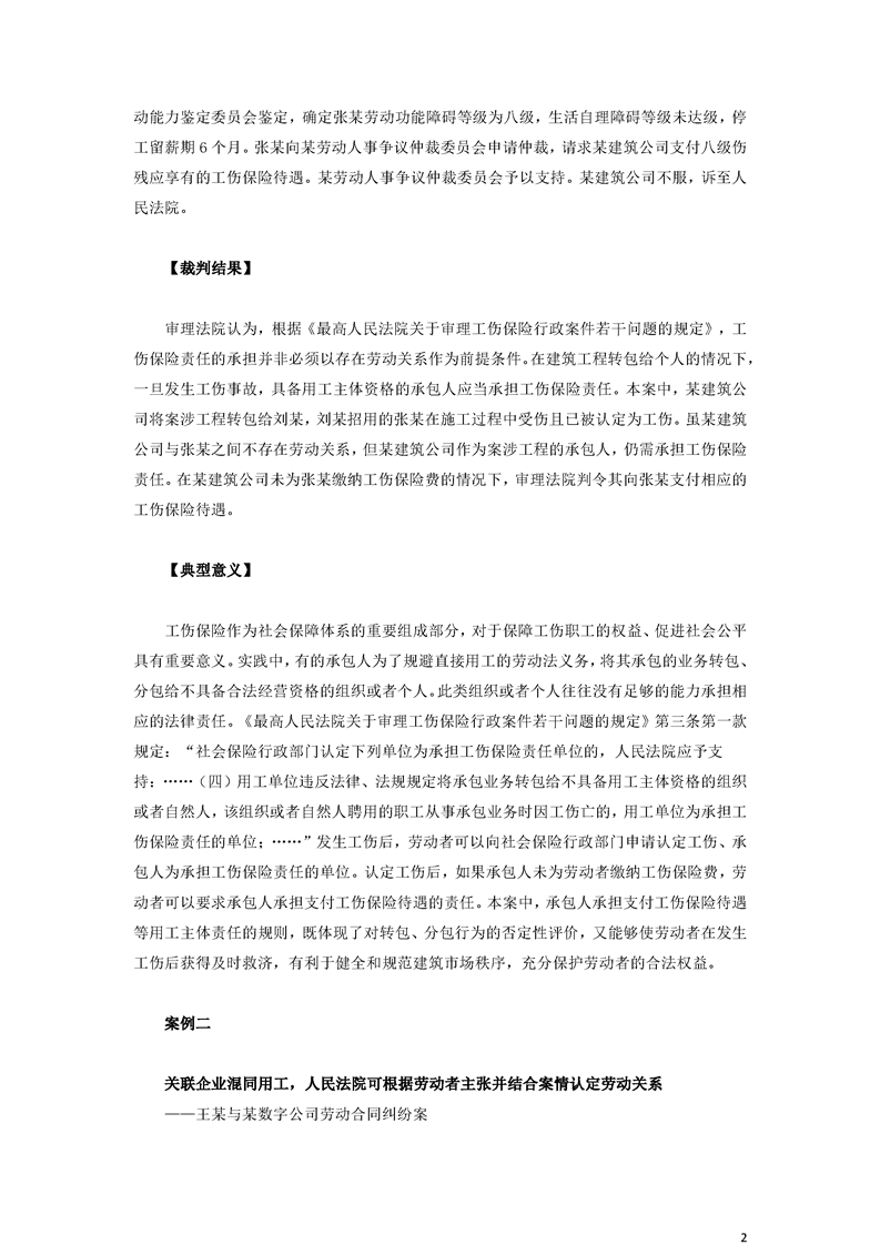 最高人民法院關(guān)于審理勞動爭議案件典型案例