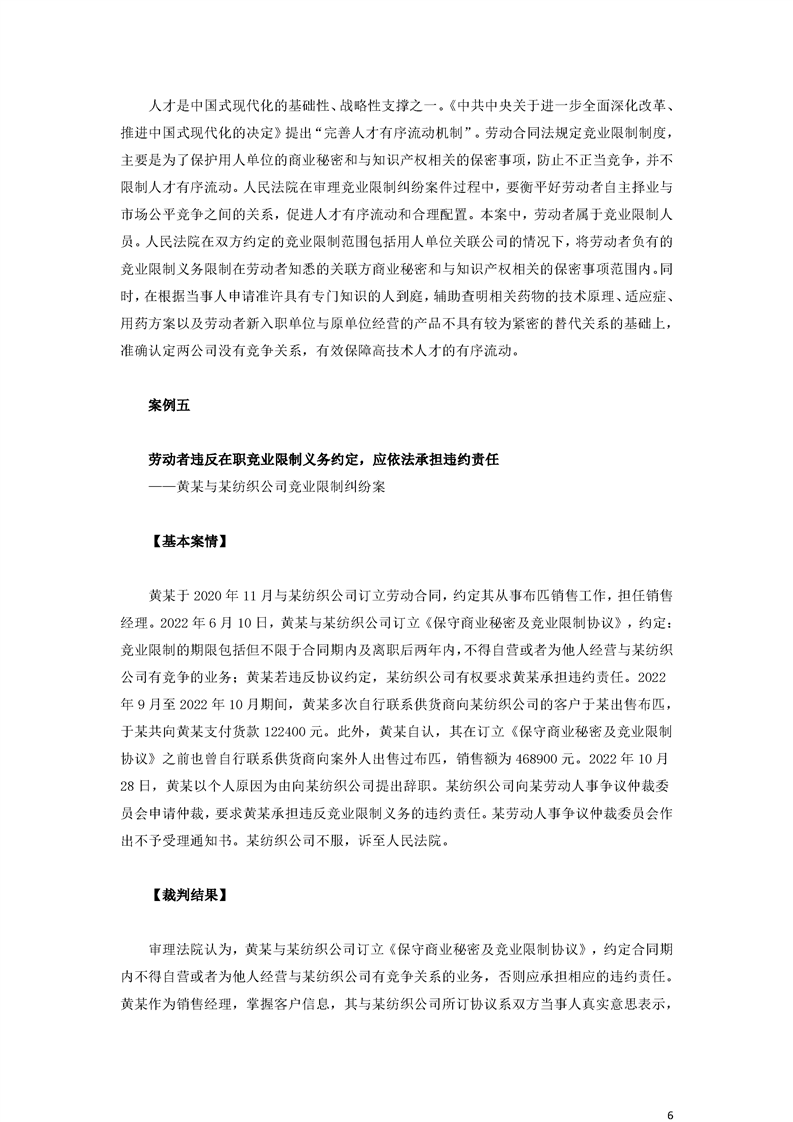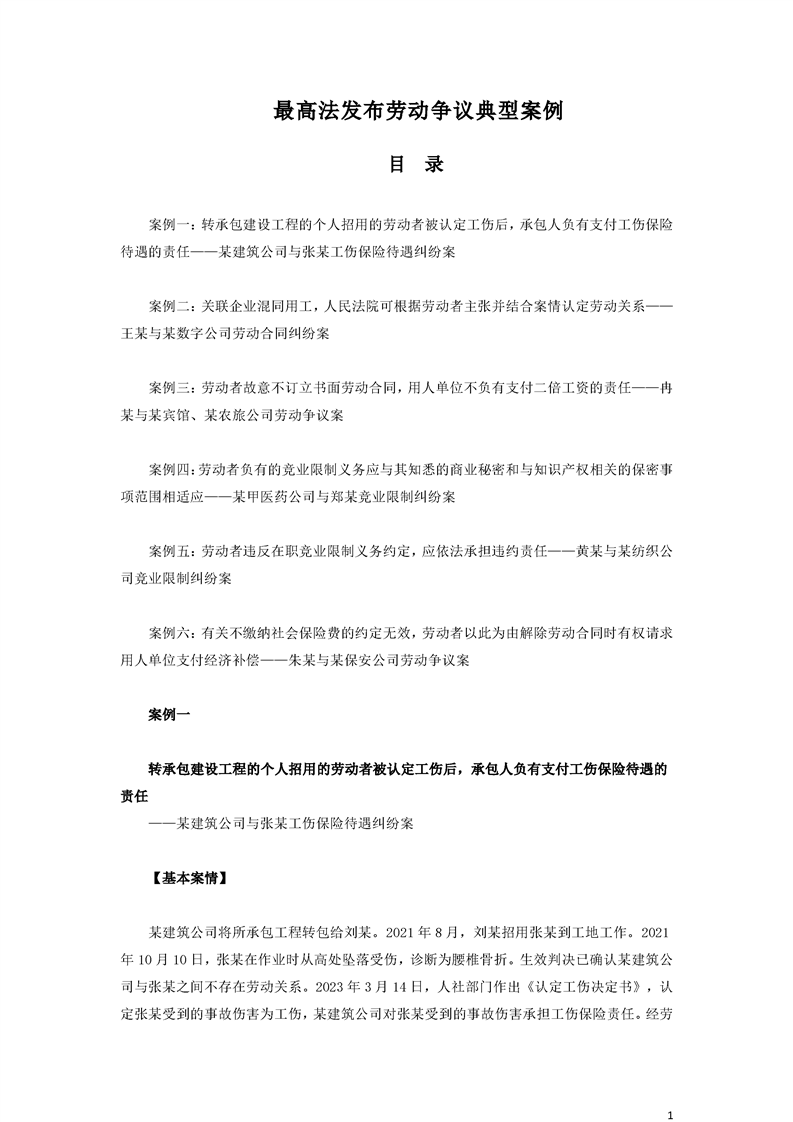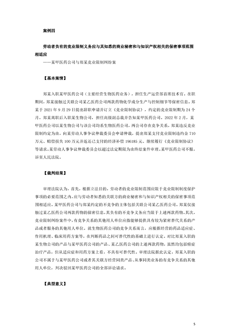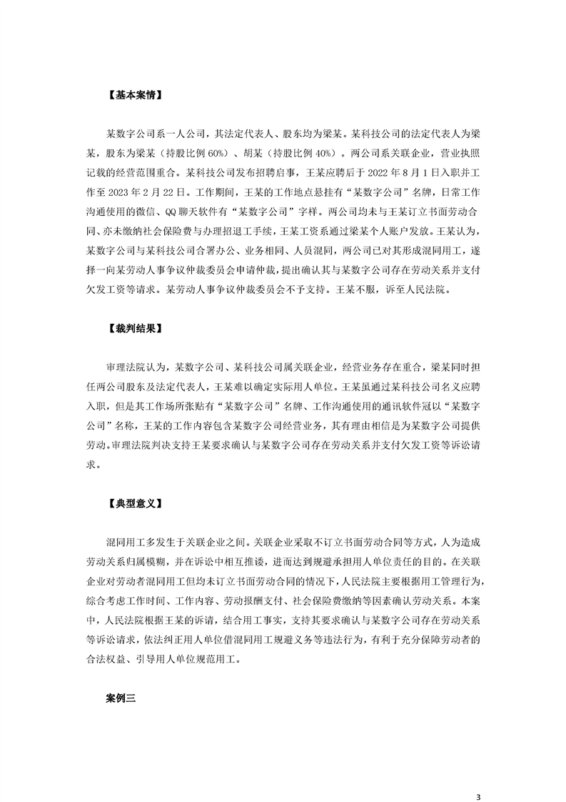 最高人民法院關(guān)于審理勞動爭議案件典型案例