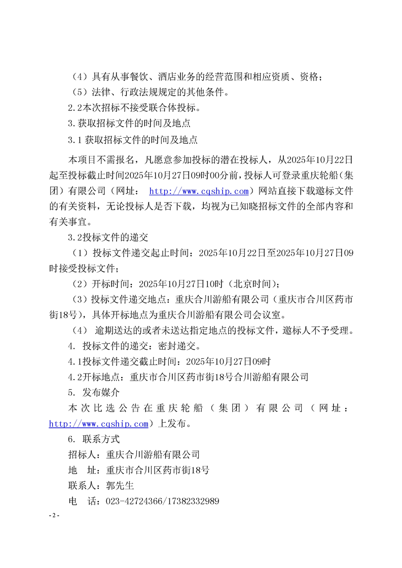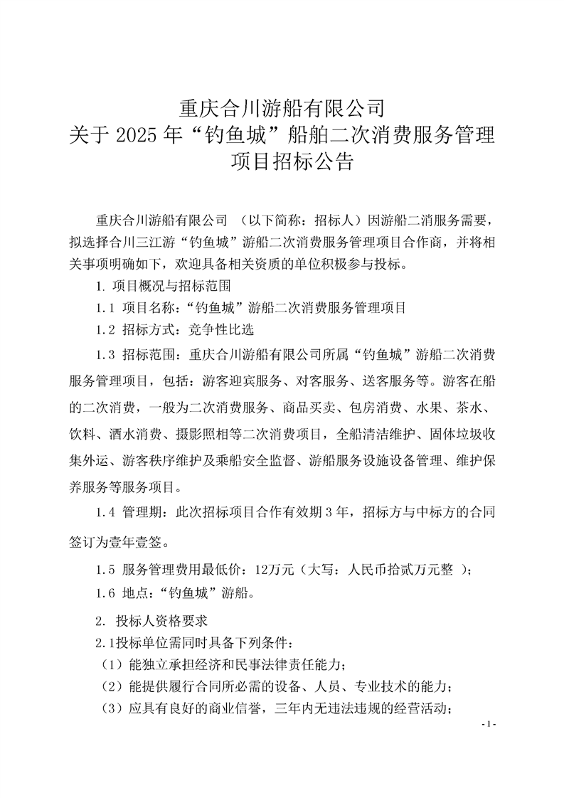 合川游船公司2025年釣魚城船舶二消服務管理招標公告